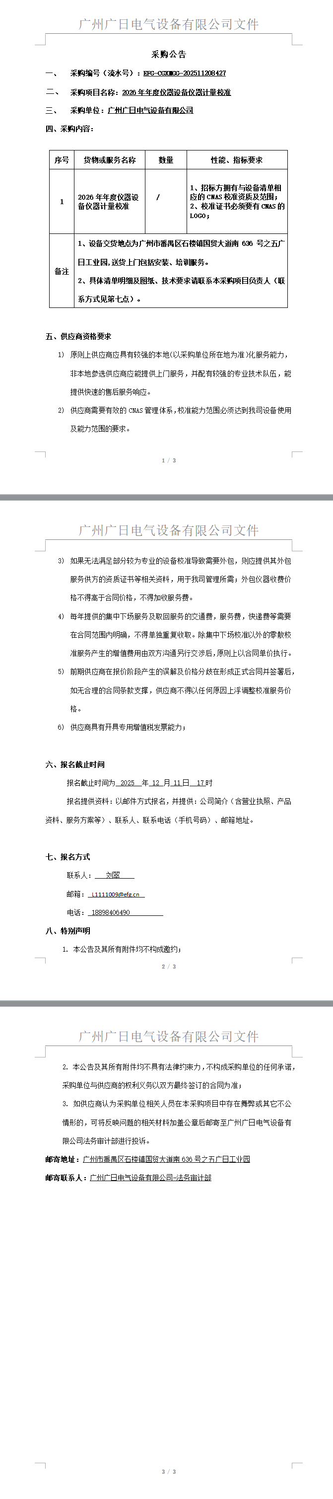 2026年年度仪器设备仪器计量校准采购项目