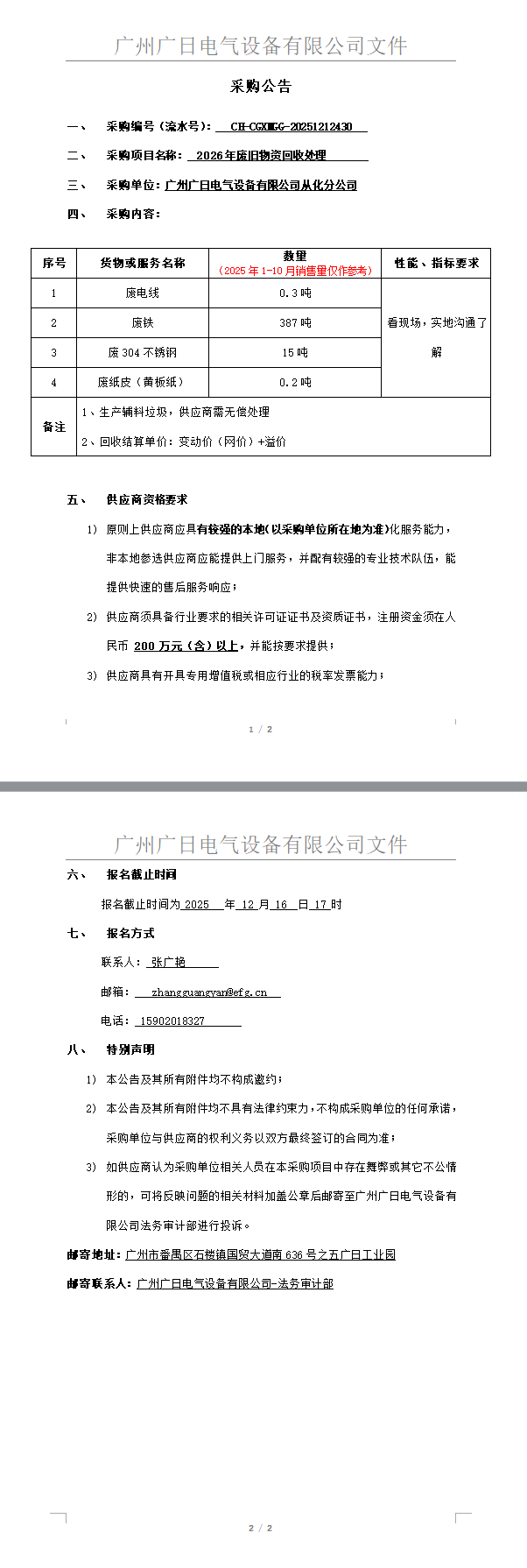 2026年废旧物资回收处理