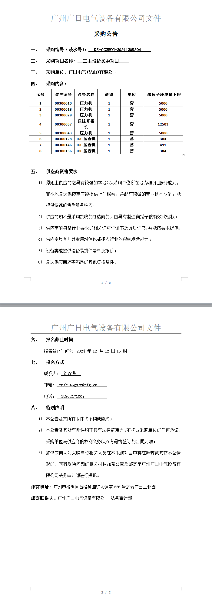 二手设备买卖项目